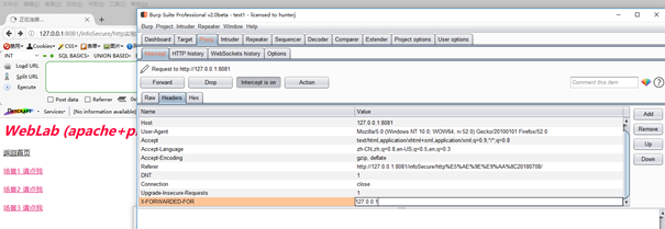 抓包并改包,添加头部字段X-Forwarded_For: 127.0.0.1