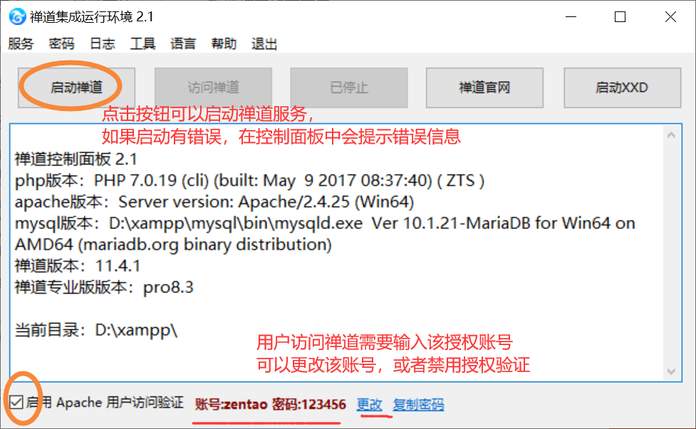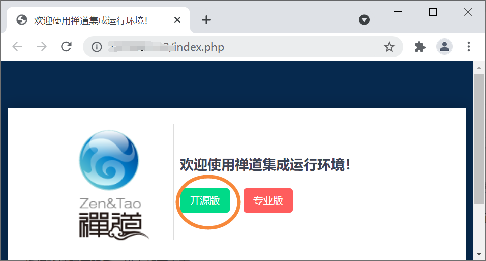 2) 在上面的窗口上点击【启动禅道】,