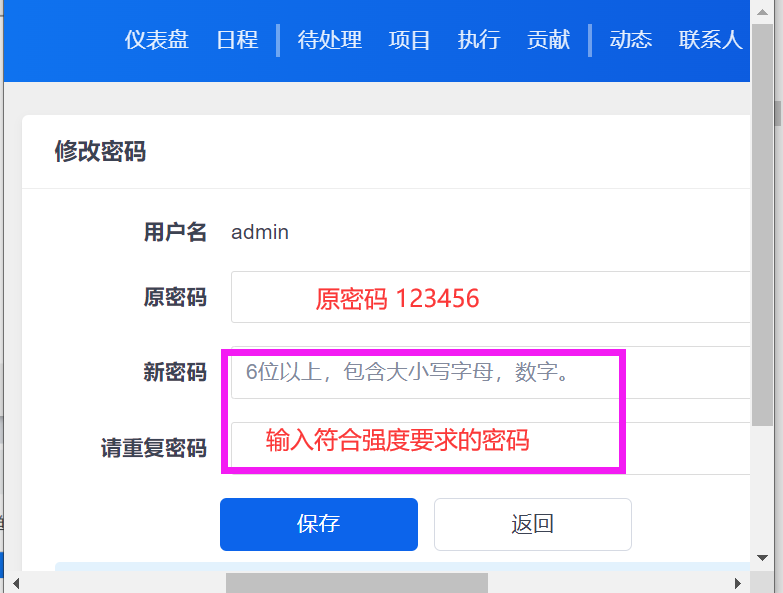 7)登录后,系统要求修改密码,