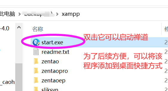 3).将xampp目录下的start.exe添加到桌面快捷键,方便后续使用