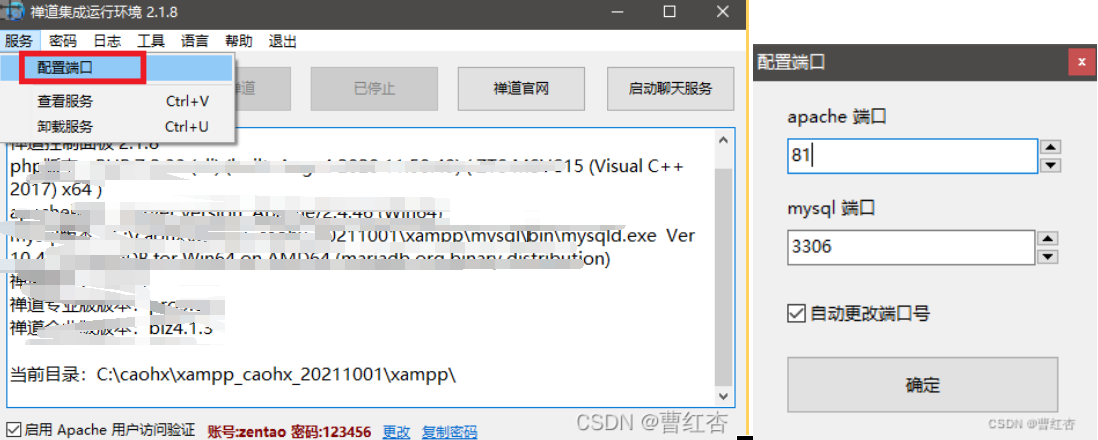 启动如果遇到问题,会在面板中显示错误信息,例如,端口与已有的应用程序的端口冲突等。则可以配置修改端口。