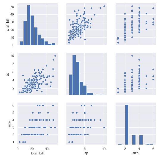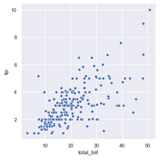 4. 任意看两个数据之间相关性可视化,比如看 total_bill 和 tip 之间的相关性,就可以如下操作进行可视化