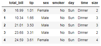 从散点图可以看出账单的数目和消费的数目基本是呈正相关, 账单的总的数目越高, 给得消费也会越多