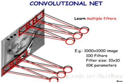 - 权值共享:有的地方的特性是相似的。所以对于每个神经元,我们用同一个卷积核去卷积图像