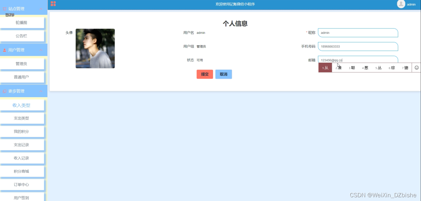 (1)它可以通过网络开展记账微信小程序信息管理工作,促进对记账微信小程序信息管理。