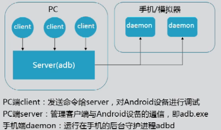 2.adb是一个C/S架构的命令行工具,主要由3部分组成