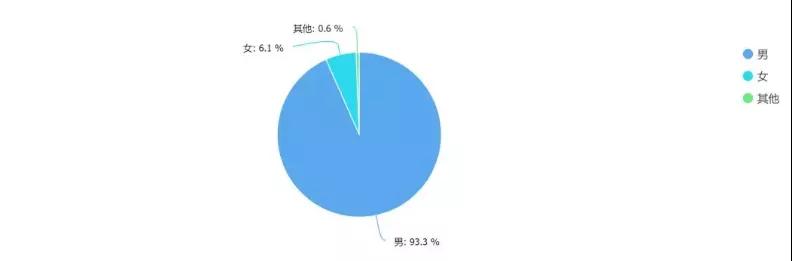 从以上数据,我们可以看到程序媛的比例仅有6.1%,而程序猿的比例高达93.3%,男多女少还是不可逆转的格局。