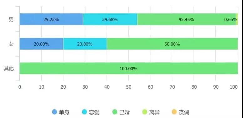 从以上数据,我们可以看到程序员有一半以上都已经结婚了,剩下的单身和恋爱对半分。谁说我们程序员找不到男朋友、女朋友的,快出来!我们程序员还是很受欢迎的。