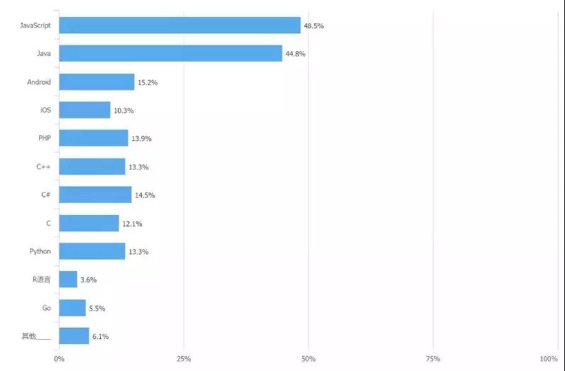 从以上数据,我们可以看到程序员最擅长前端的JavaScript 和后端Java,这也现在市场需求相吻合,现在市场上前端工程师的需求非常大,至于老牌的Java,一直都是程序员市场的重头戏。