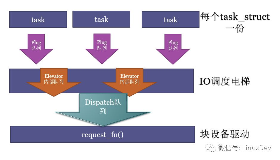 电梯的内部实现可以非常灵活,但是入口是elevator_add_req_fn(),出口是elevator_dispatch_fn()。