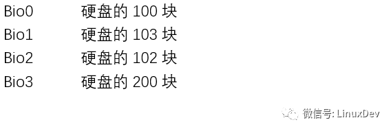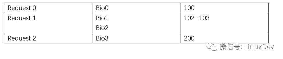 Bio3对应硬盘的200块,无法合并,于是得到新的request2。