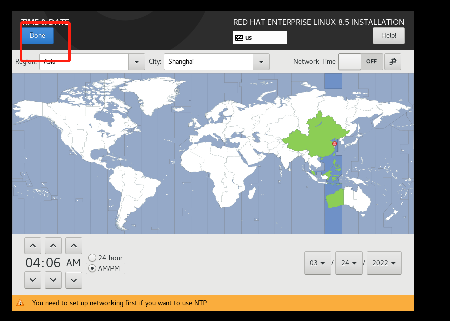 22..键盘和语言看个人喜好修改,建议英文。时区修改为上海,点击Done(完成)