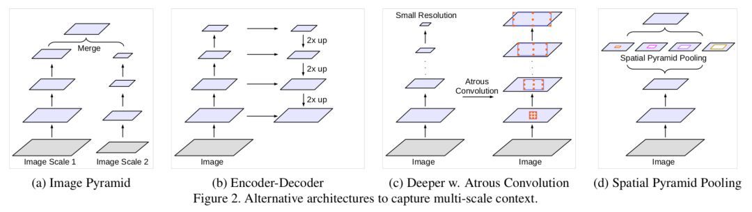 DeepLabv3 论文比较了多种捕获多尺度信息的方式: