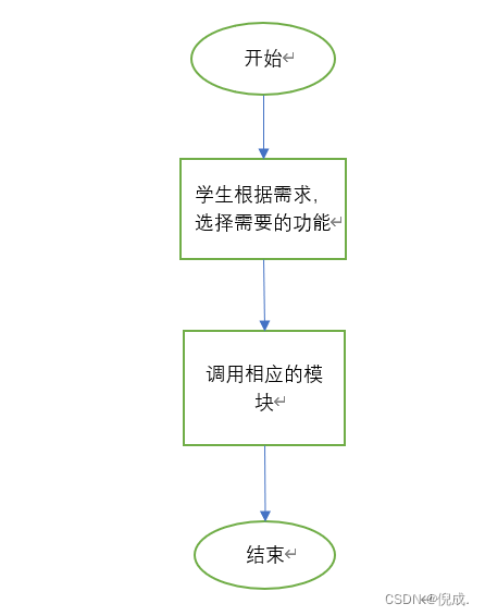 处理过程: 进入学生模块后,拥有学生权限,可以根据需要选择调用的子模块。 |