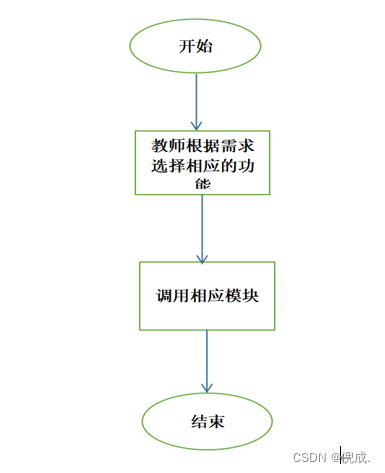 处理过程: 进入教师人员模块后,拥有教师权限,可以根据需要选择调用的子模块。 |