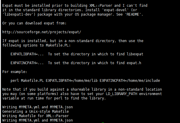 出现问题缺少Expat,直接install失败了,所以去官网下载然后自己安装。http://sourceforge.net/projects/expat/。