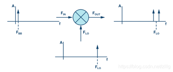 RF混频器有两个输入端口和一个输出端口,如图3所示。理想混频器将产生一个输出,它是两个输入的乘积。就频率而言,该输出的频率应当是FIN + FLO以及FIN – FLO,不含其它项。如果任一输入不在驱动状态下,则不会有输出。