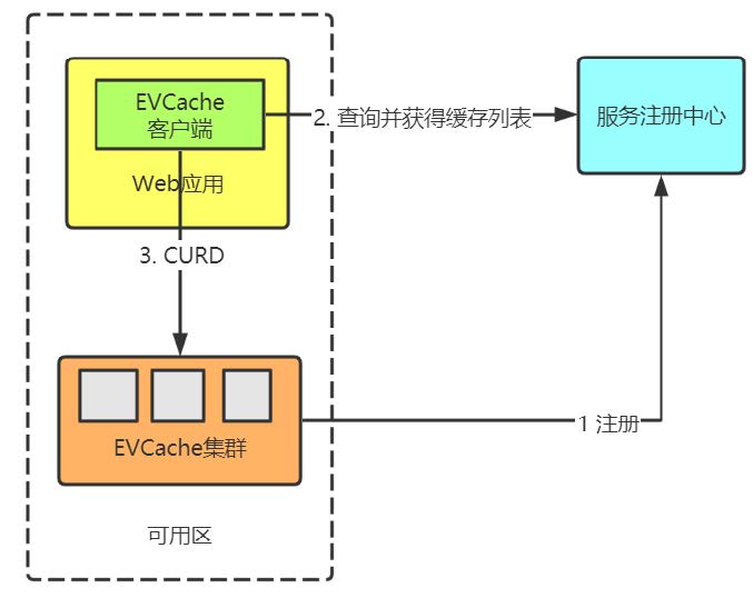 - 集群启动时,EVCache向服务注册中心(Zookeeper、Eureka)注册各个实例
