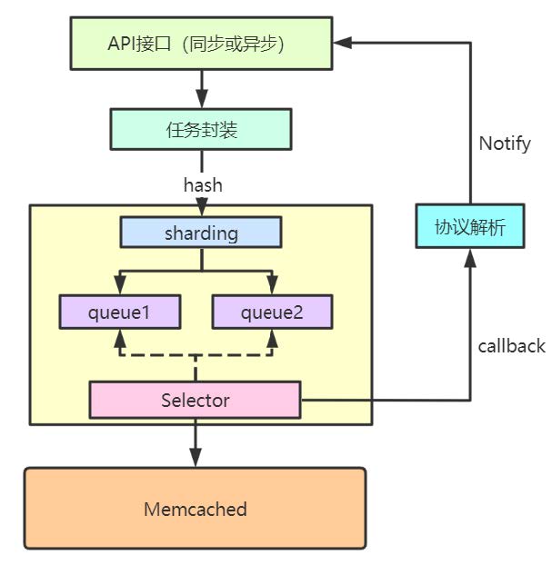 - Selector异步获取队列中的Task,进行协议的封装和发送相应Memcached