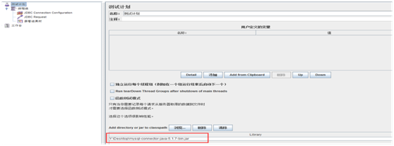 ①导入jdbc的jar包,因为jmeter本身不能直接连接mysql,所以需要导入第三方的jar包,来连接mysql。