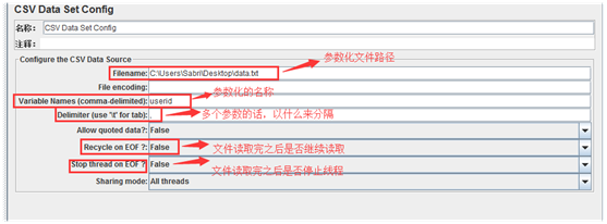 ③使用值(从文件读取的话,需要在线程组里面添加一个CSV Data Set Config,它就是做前面两步的操作的)。