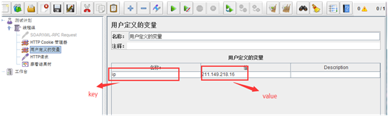 在线程组中添加一个用户定义的变量,然后写key和value就可以了,key就是这个参数的名称,也就是你在脚本里面取的值,value就是具体值了。