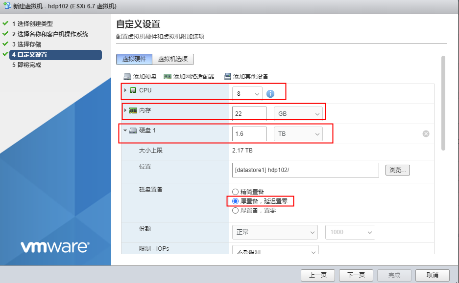 (5)CPU 核数、内存大小、硬盘(选了厚置备)
