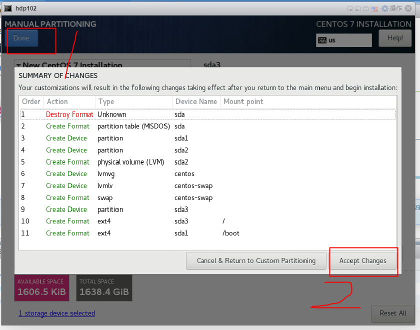 (5) 选中磁盘,选择i wil configure partitioning(我将会配置分区),然后点击done,盗图了,忘了截图