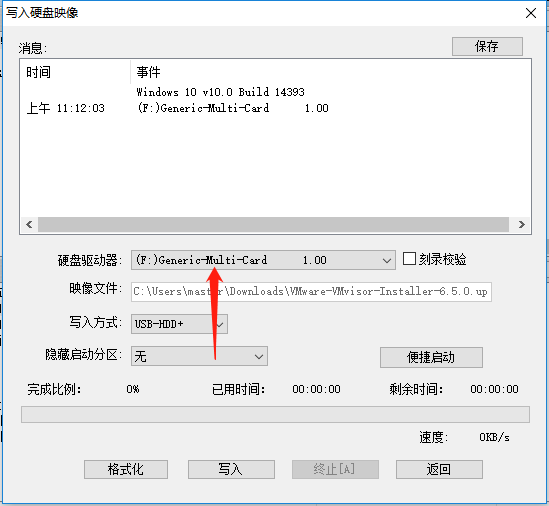 2.4.写入硬盘映像,驱动器选择插入的U盘