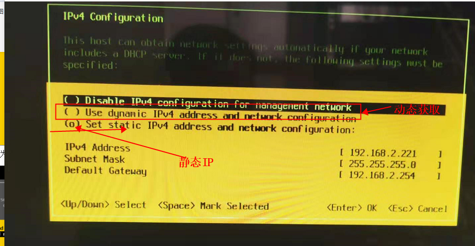 (11)选择第二个设置静态ip,设置为所要求的ip地址,上下键选择,空格键选中