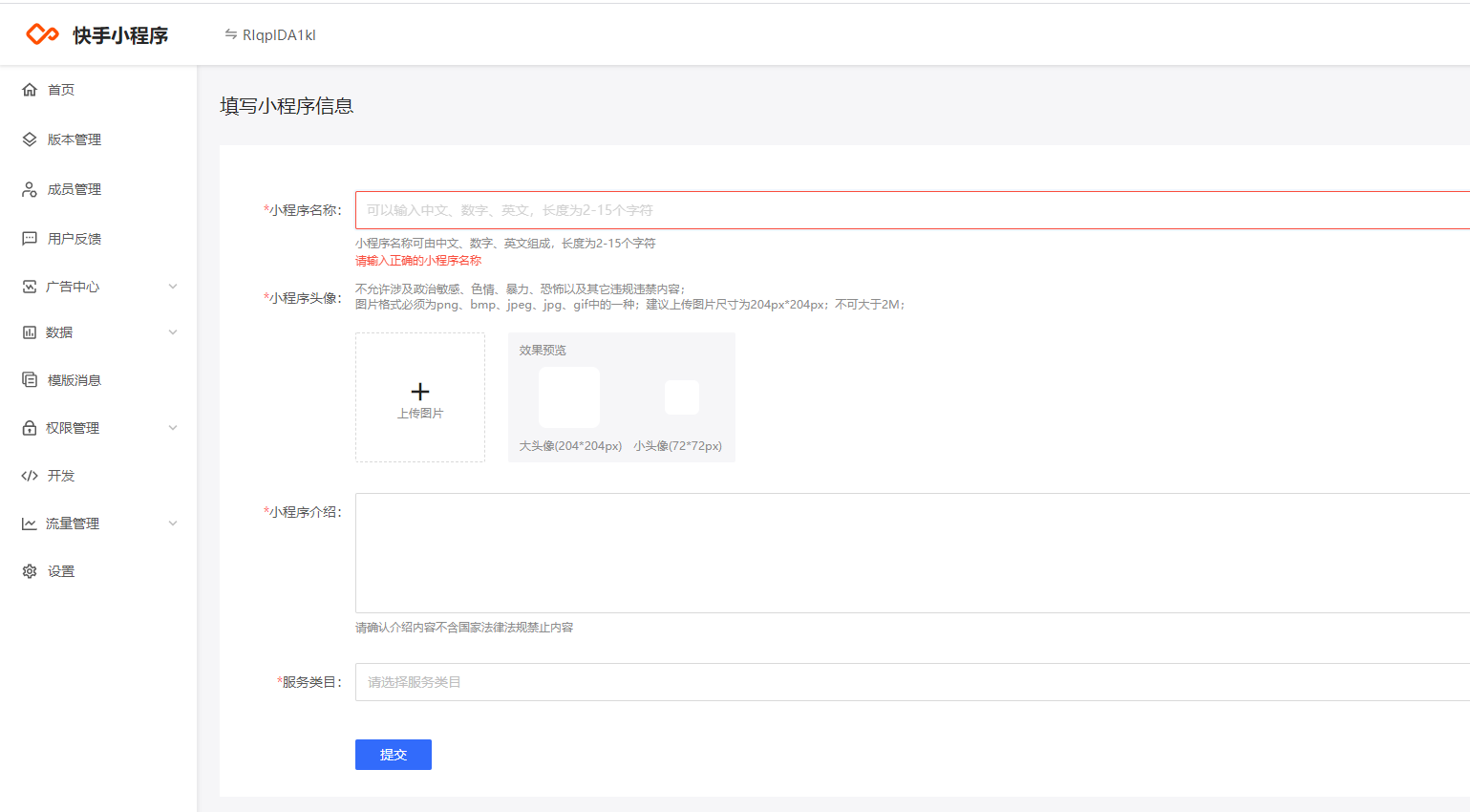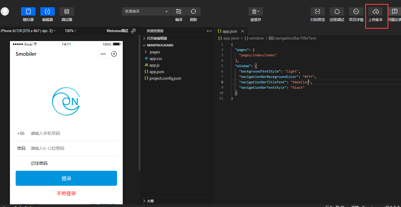 注:快手小程序审核规范中写明拒绝纯webview小程序, 即无法通过以下步骤上架快手小程序, Smobiler只能作为快手小程序开发的一个补充, 具体见 快手-小程序审核规范