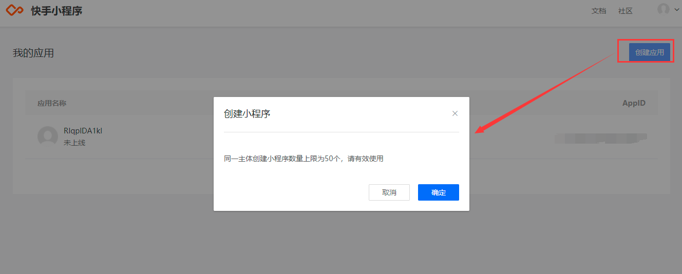 Step.1 注册快手开发者平台 ,登录之后点击创建