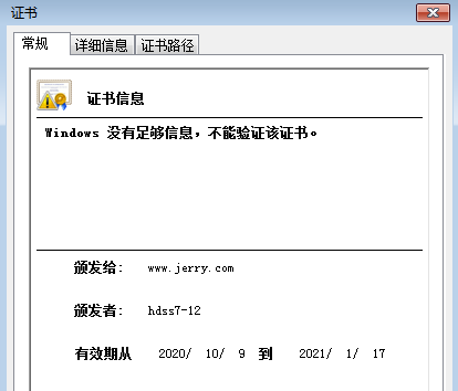 issuer= /C=CN/ST=liaoning/L=shenyang/O=jerry.com/OU=it/CN=hdss7-12