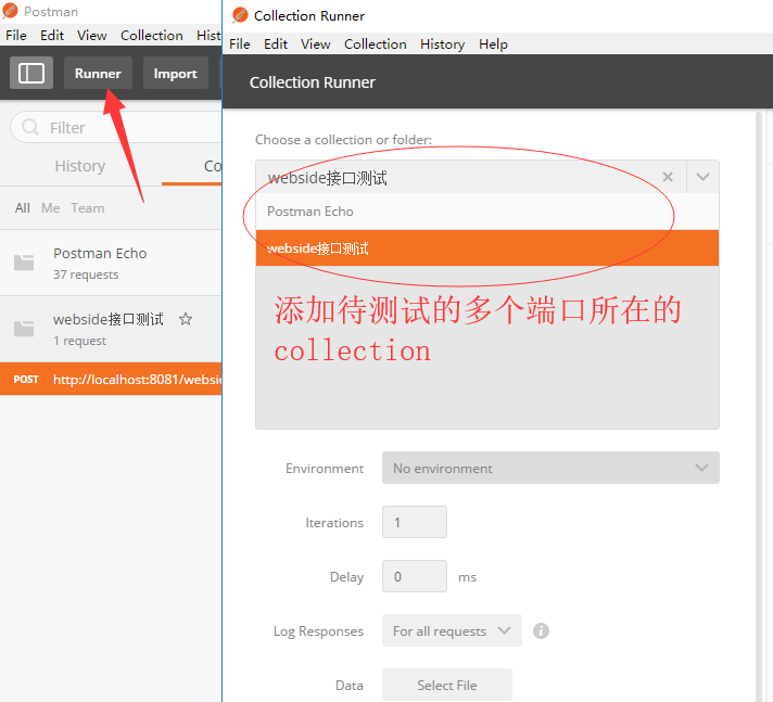 如果有多个接口需要测试,没有必要一个一个测试,可以使用postman中的批量测试。