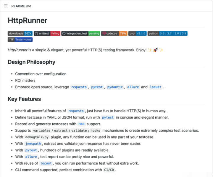 4)HttpRunner - HttpRunner 是一款面向 HTTP(S) 协议的通用测试框架;