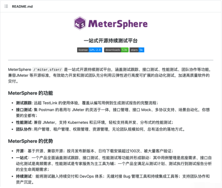 1)metersphere - 一站式的开源企业级持续测试平台;