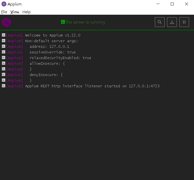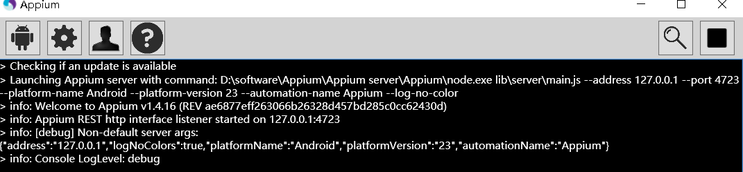 之后检查appium知否能正常运行:cmd中输入appium,他会打开appium服务端
