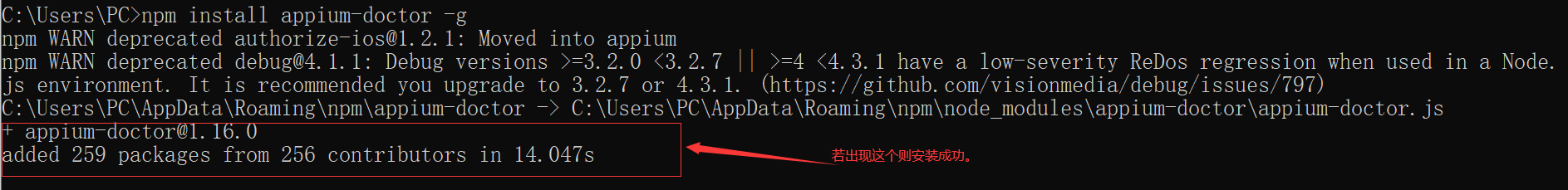 接下来执行以下命令对appium进行安装