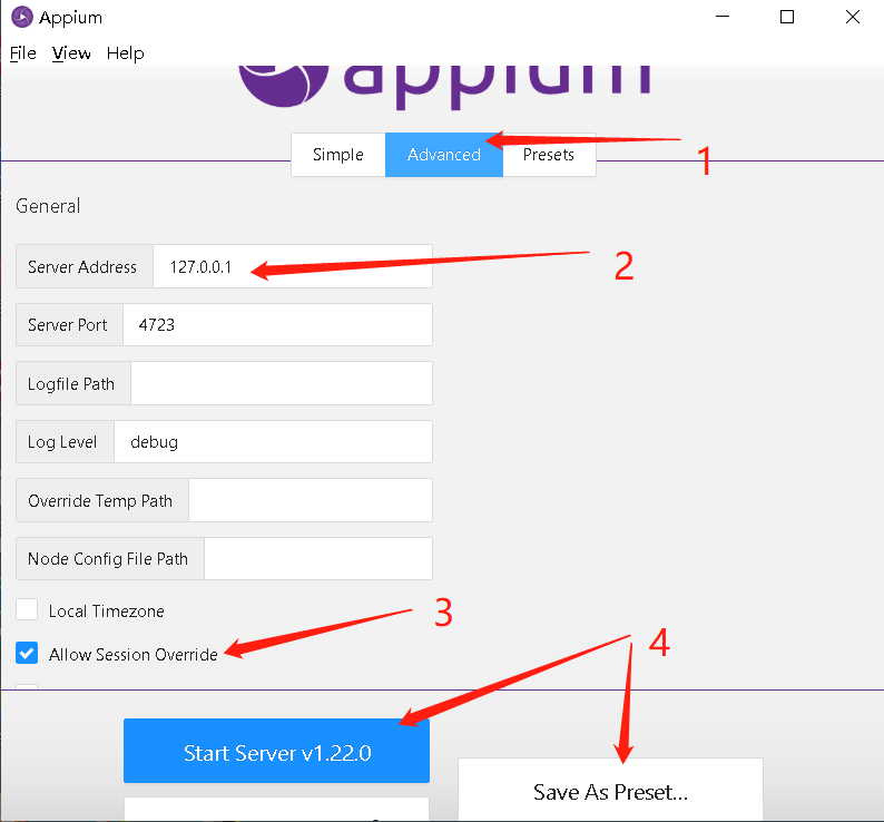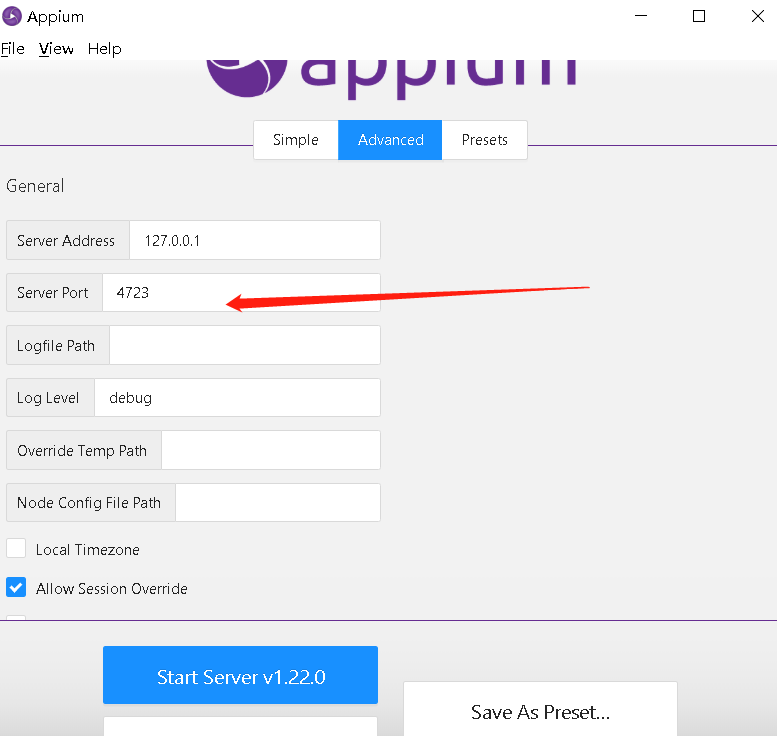 2.开启appium服务(这里我使用客户端启动的服务)