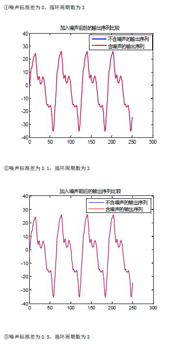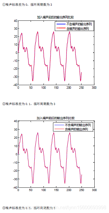 legend('不含噪声的输出序列','含噪声的输出序列');