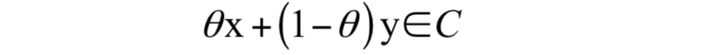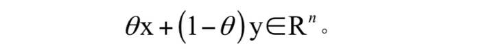 对于n维空间中点的集合C,如果对集合中的任意两点x和y,以及实数 ,都有: