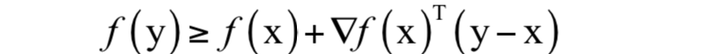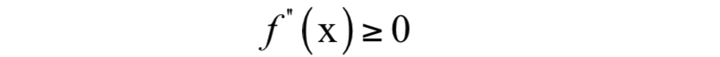 其几何解释为函数在任何点处的切线都位于函数的下方。对于一元函数,凸函数的判定规则为其二阶导数大于等于0,即: