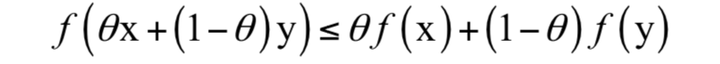 在微积分中我们学习过凸函数的定义,下面来回忆一下。在函数的定义域内,如果对于任意的x和y,以及实数,都满足如下条件: