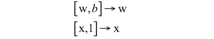 如果将权重向量和特征向量进行增广,即将w和b进行合并: