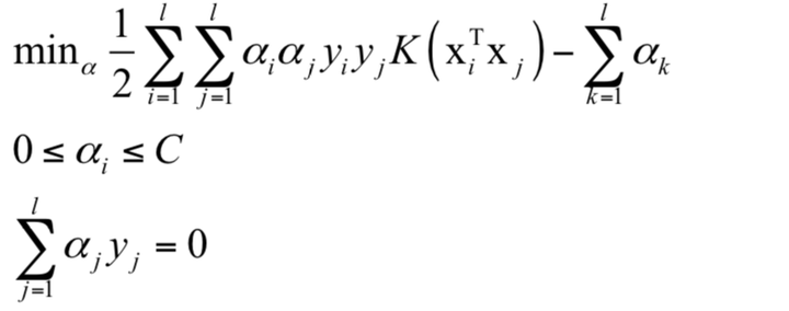 通过拉格朗日对偶,我们转换为对偶问题,加上核函数后的对偶问题为: