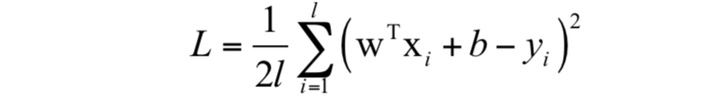 其中权重向量w和偏置项b是训练要确定的参数。定义损失函数为误差平方和的均值: