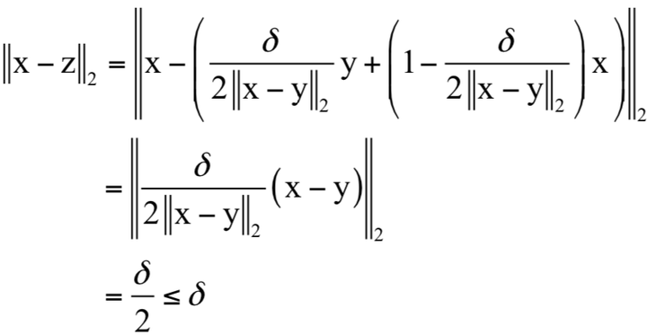 则称该集合称为凸集。如果把这个集合画出来,其边界是凸的,没有凹进去的地方。直观来看,把该集合中的任意两点用直线连起来,直线上的点都属于该集合。相应的,点: