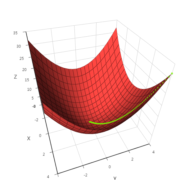 在上图中可行域不是凸集,中间有断裂,目标函数还是凸函数。在曲线的左边和右边各有一个最小值,不能保证局部最小值就是全局最小值。可以很容易把这个例子推广到3维空间里的2元函数(曲面)。由于凸优化的的目标函数是凸函数,Hessian矩阵半正定,因此不会出现鞍点,所以找到的梯度为0的点一定是极值点。