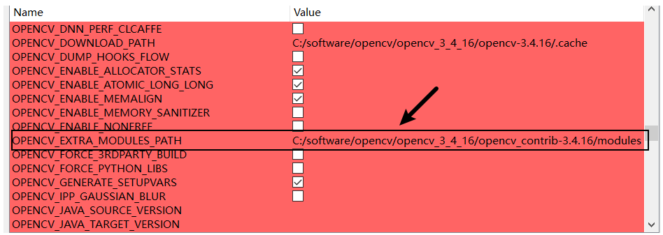 然后手动添加OPENCV_EXTRA_MODULES_PATH