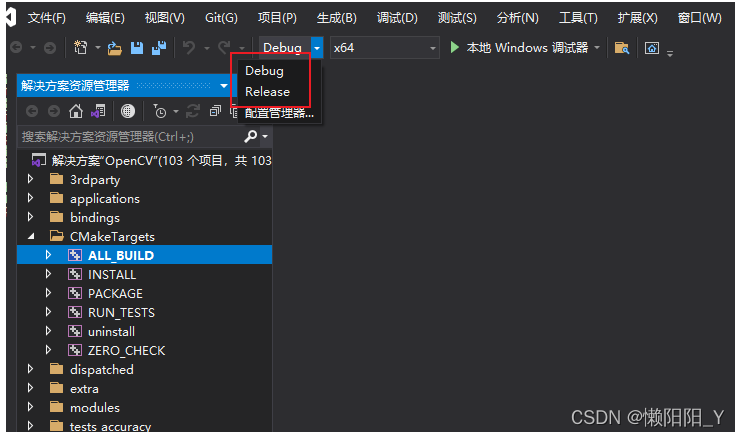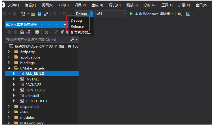 下载并且安装最新的OpenCV,并分别在debug模式和release模式下进行编译。